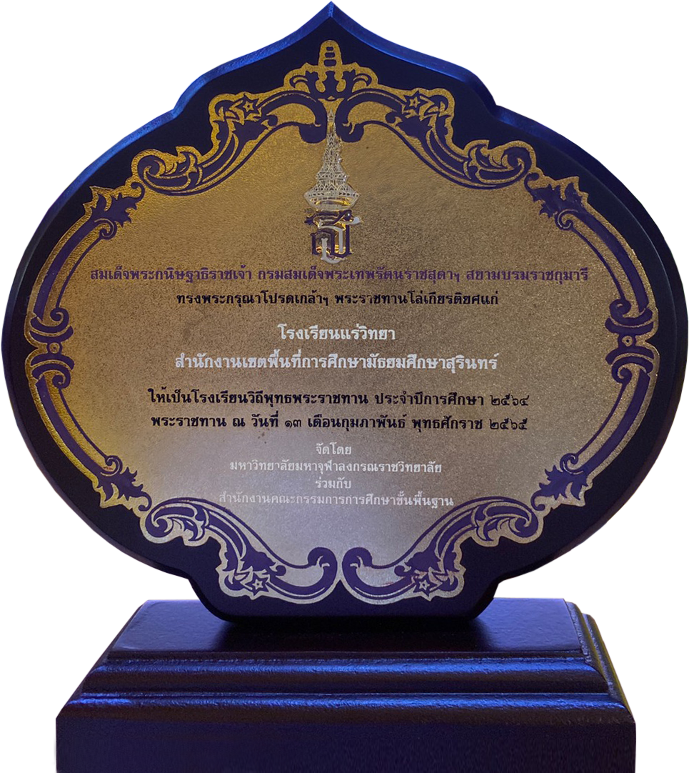 | 30 ก.ย. 2564 | รางวัลโรงเรียนวิถีพุทธพระราชทาน รุ่นที่ 4 ประจำปี พ.ศ. 2564 | สำนักงานคณะกรรมการการศึกษาขั้นพื้นฐาน ร่วมกับมหาวิทยาลัยมหาจุฬาลงกรณราชวิทยาลัย | โล่พระราชทาน ประกาศ |
