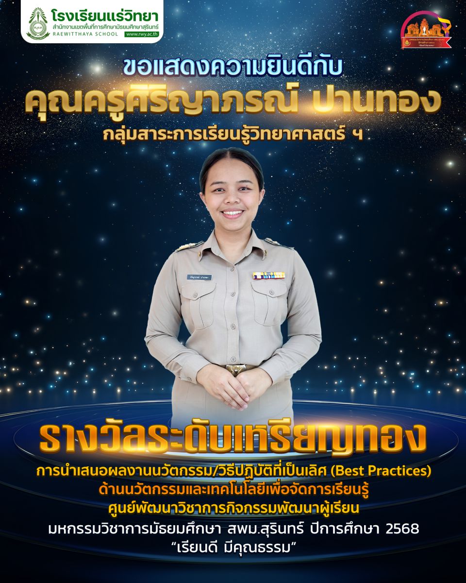 ที่ได้รับรางวัลการการนำเสนอผลงาน มหกรรมวิชาการมัธยมศึกษา สพม.สุรินทร์ ปีการศึกษา 2568