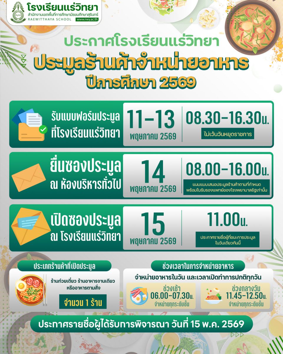 ประมูลร้านค้าจำหน่ายอาหาร ปีการศึกษา 2569